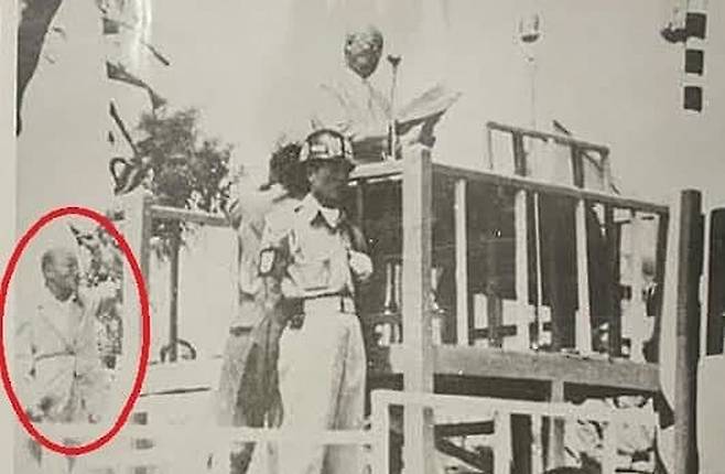 | ▲ 독립운동가 유시태가 1952년 6월 25일 이승만을 뒤에서 저격하려는 당시 모습. |