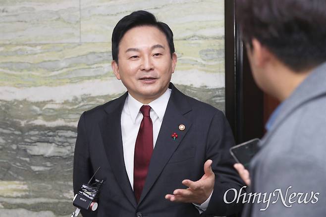 | ▲ 원희룡 국토교통부 장관이 5일 서울 여의도 국회에서 열린 국토교통위원회 전체회의에 출석한 뒤 기자들의 질문에 답하고 있다. |