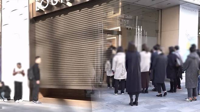 A. 이른바 명품이라고 불리는 상당히 고가의 물건들 파는 데는 11시나 12시쯤 보통 문을 열거든요. 그런데 앞서서 30분이나 이미 1시간 전부터 줄을 서가지고 한 10여 명이 서 있거나 그리고 또 그 옆에 보면 긴자에는 큰 백화점들도 많아서 이미 문을 열기 전에 사람들이 계속 줄을 서 있는 상황인 거죠. 빨리 들어가야지 일종의 좋은 물건을 빨리 살 수 있다는 이른바 오픈런을 하려는 손님들이었던 거고요.