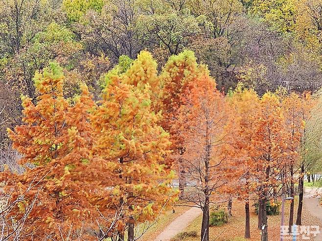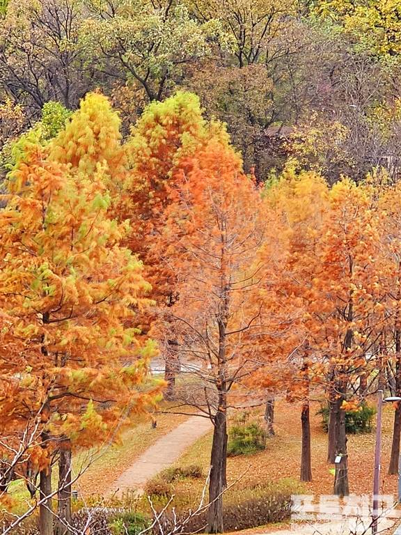 몇 그루 안되는 메타세콰이어가 이쁘게 물들었다.