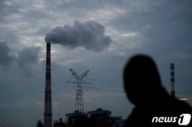 (상하이 로이터=뉴스1) 김성식 기자 = 2021년 10월 중국 상하이의 석탄 화력발전소가 검은 매연을 뿜어내는 모습이다. 2021.10.14.
