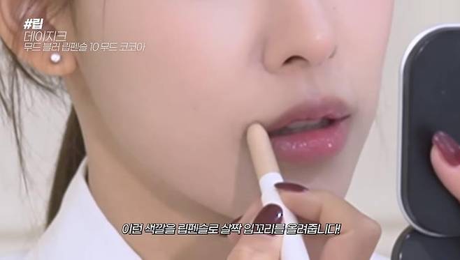 긴장으로 표정이 경직되고 입이 바짝바짝 말라가는 자리일수록 중요한 립 메이크업. 입술은 무조건 촉촉한 스타일로 중앙을 강조해 발라준다. 여기서 중요한 꿀팁! 베이스보다 한 톤 밝은 립라이너를 활용해 입꼬리를 살짝 올려 그려줄 것. 웃지 않아도 미소를 머금은 듯 긍정적인 인상을 줄 수 있다.