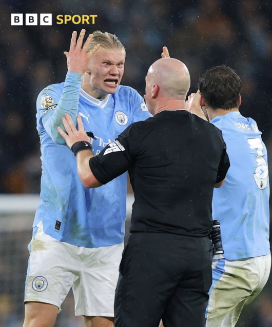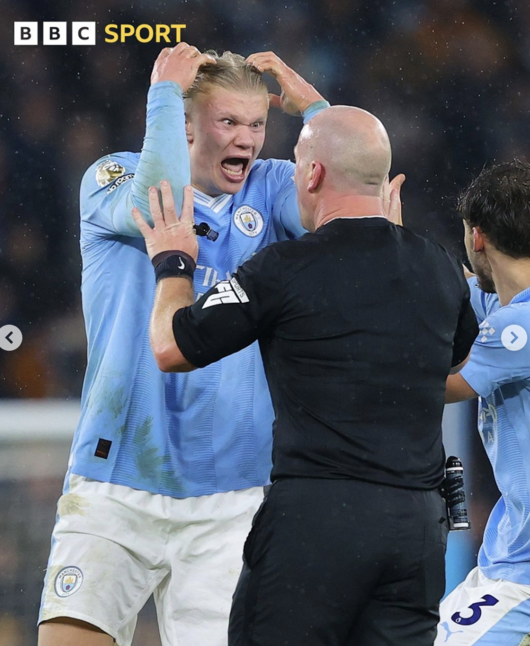 맨시티는 지난 4일 영국 맨체스터의 에티하드 스타디움에서 토트넘과 2023-2024시즌 잉글리시 프리미어리그(EPL) 14라운드 홈경기를 치러 3-3 무승부를 기록했다. 리그 3위(승점 30). 이 경기에서 '에이스 공격수' 엘링 홀란을 포함해 다수의 맨시티 선수들이 심판에게 달려가 판정에 대해 거칠게 항의하는 장면이 있었다.