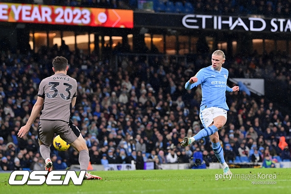 이날 최전방 공격수로 출전해 풀타임을 소화한 홀란. 그가 폭발한 시점은 3-3이던 후반 막판이다.