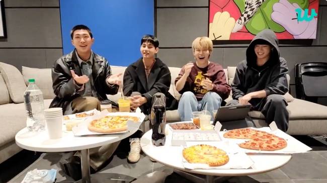 방탄소년단 멤버 RM과 지민, 뷔, 정국은 지난 5일 위버스 라이브를 통해 팬들과 소통했다.