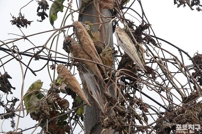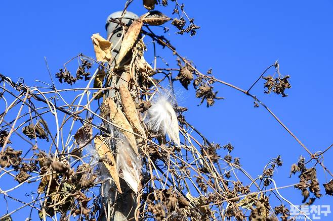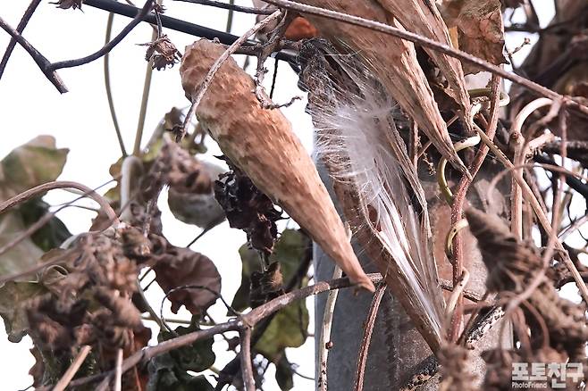 박주가리 홀씨 여행 준비를 하고 있습니다.