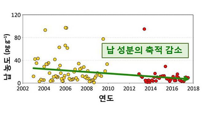 2012∼2017년 쌓인 눈의 평균 납 농도는 단위 그램당 10.6 피코그램(1피코그램은 1조 분의 1g)으로, 이전 연구에서 보고된 2003∼2009년의 평균 21.5 피코그램보다 49% 줄어든 것으로 확인됐습니다.