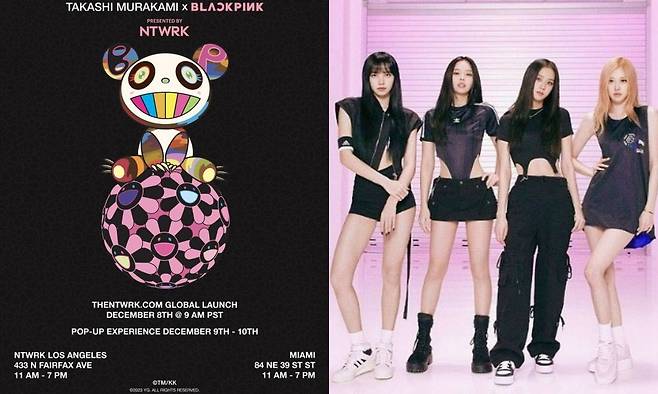 블랙핑크와 무라카미 디카시 한정판 컬래버레이션은 오는 8일 공개된다. 포스터에는 오프라인으로는 NTWRK LA, 마이애미에서 팝업스토어가 열린다고 전했다. 팝업 스토어에 못 오는 경우 NTWRK에서 온라인으로 컬래버레이션을 구매할 수 있다고 덧붙였다. 더 자세한 내용은 내일(7일) 발표된다고 설명했다.