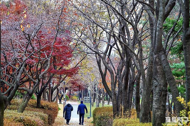 기온이 뚝 떨어져 초겨울 날씨지만 산책하는 사람들이 많이 보입니다.