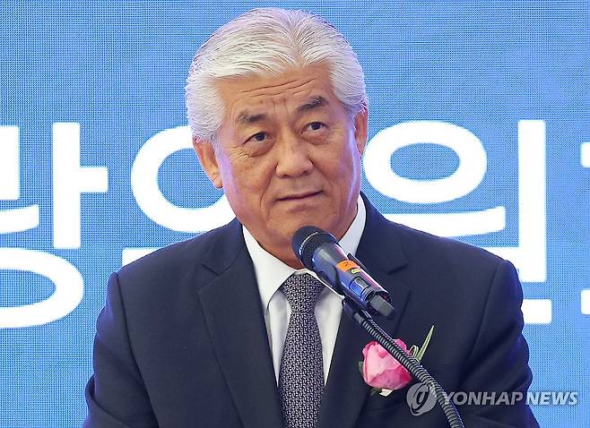 (서울=연합뉴스) 김도훈 기자 = 이상헌 국회 문화체육관광위원회 위원장이 6일 서울 송파구 올림픽회관에서 열린 재개관식에서 축사하고 있다.