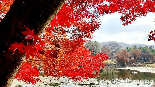 영하로 내려간 날씨지만 연못가 현충지 단풍은 고왔다.