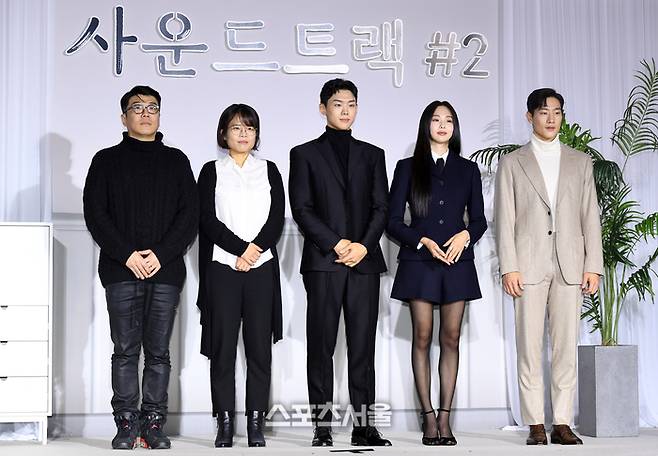 6일 서울 중구 앰버서더서울풀만호텔에서 진행된 디즈니+ '사운드트랙 #2' 제작발표회에서 공동 연출과 주연 배우들이 취재진을 향해 포즈를 취하고 있다. 왼쪽부터 최정규 감독, 김희원 감독, 배우 손정혁, 금새록, 노상현. '사운드트랙 #2'는 피아노 과외 선생님 ‘현서’가 뜨겁게 사랑하고 차갑게 헤어졌던 전 연인과 바랜 꿈을 다시 잡아준 연하남과 함께 뮤직 프로젝트를 위해 한 집에 머물게 되면서 벌어지는 로맨스 드라마로 배우 금새록, 노상현, 손정혁 등이 출연하며 김희원 감독과 최정규 감독이 공동 연출을 맡았다. 2023. 12. 6. 박진업기자 upandup@sportsseoul.com