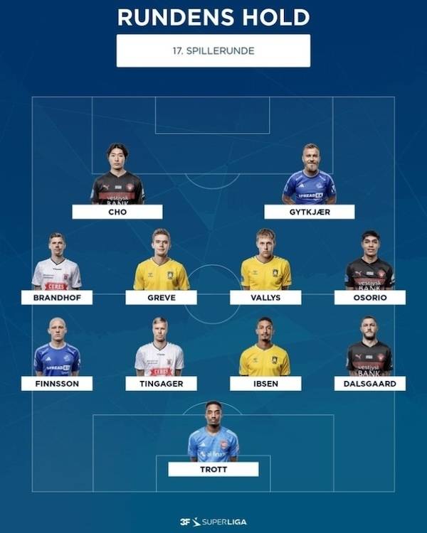 덴마크 수페르리가는 6일 공식 채널을 통해 17라운드 이 주의 베스트 11을 선정, 발표했다.