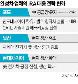 중국 공급망을 배제하고 북미에서 생산된 전기차에 보조금을 주는 인플레이션 감축법(IRA) 규정이 갈수록 복잡해지자 완성차 업체들의 전략 변화가 감지되고 있다.