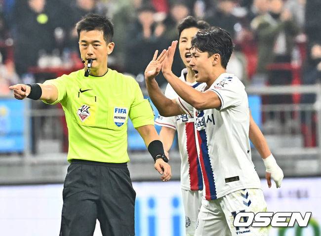 ![[OSEN=부산, 이석우 기자] 6일 부산아시아드주경기장에서 K리그 승강 플레이오프(PO) 1차전 부산 아이파크와 수원FC의 경기가 열렸다. 수원FC 이승우가 부산 아이파크 이승기에게 파울을 범하고 주심의 파울 선언에 아니라고 항변하고 있다. 2023.12.06 / foto0307@osen.co.kr](https://img4.daumcdn.net/thumb/R658x0.q70/?fname=https://t1.daumcdn.net/news/202312/07/poctan/20231207072826889mduc.jpg)