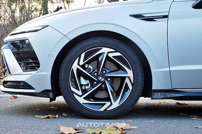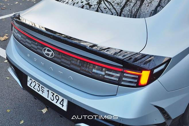옆은 크게 건드리지 않았다. 낮게 시작하는 프런트 엔드와 긴 후드, 매끈한 루프라인까지 기존과 같다. 희미하게 사라지는 유연한 캐릭터라인과 사이드미러, 각 필러의 형태도 동일한데 기존 쏘나타의 디자인 완성도가 높아 불만이 없다. 이 외에 바람개비 모양의 휠과 펜더 장식은 신형다운 이미지를 강조한다.