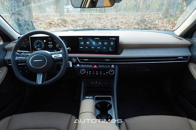 실내는 운전자의 주행 경험에 초점을 맞춰 넓은 첨단의 공간으로 구성했다. 대표적으로 12.3인치의 디지털 클러스터와 인포테인먼트 시스템으로 구성한 디스플레이가 눈에 들어온다. 최신 현대차 인포테인먼트 시스템과 사용자 환경을 담은 게 특징이며 간결하면서도 직관적인 그래픽을 통해 누구나 쉽게 사용할 수 있다.