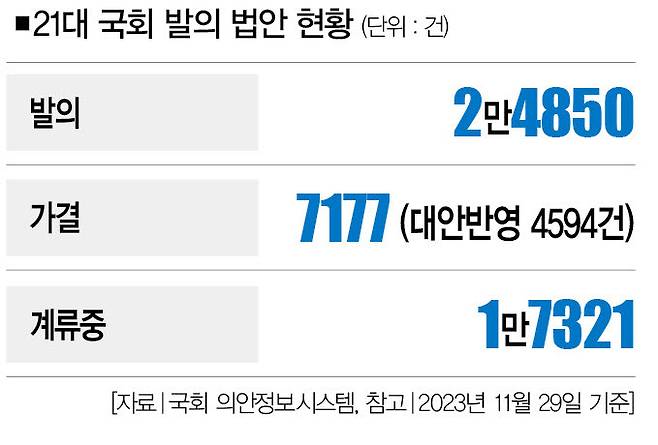 ![21대 국회의 법안 가결률은 현재 28.8%에 머물고 있다.[사진=뉴시스]](https://img1.daumcdn.net/thumb/R658x0.q70/?fname=https://t1.daumcdn.net/news/202312/07/thescoop1/20231207112956168ggju.jpg)
