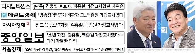 | ▲ 김홍일 방송통신위원장 후보자의 백종원 더본코리아 대표 가정교사 이력 전하는 기사 |