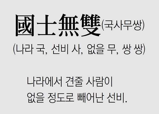 [신문과 놀자!/풀어쓰는 한자성어]國士無雙(국사무쌍)(나라 국, 선비 사, 없을 무, 쌍 쌍)