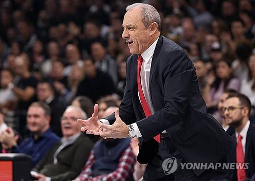 epa11016197 Milan's head coach Ettore Messina reacts during the Euroleague basketball match between Partizan Belgrade and Emporio Armani Milan in Belgrade, Serbia, 07 December 2023. EPA/ANDREJ CUKIC