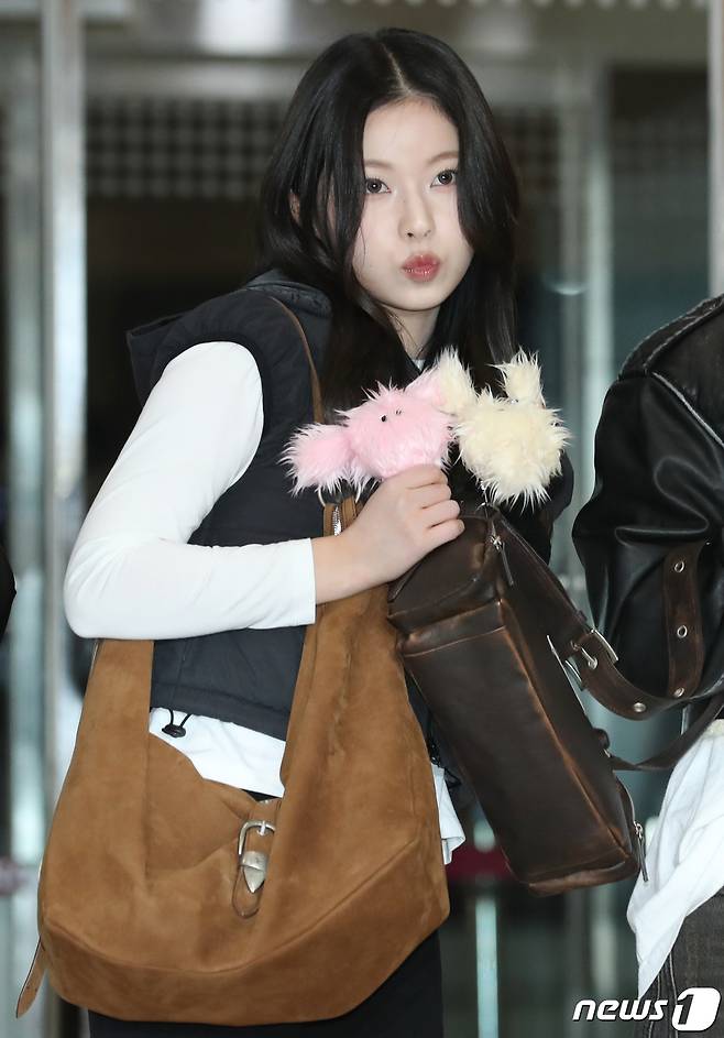 (김포공항=뉴스1) 권현진 기자 = 그룹 엔믹스 규진이 ‘2023 뮤직뱅크 글로벌 페스티벌’ 참석을 위해 8일 오전 김포국제공항에 도착해 일본 도쿄로 출국하기 전 인사를 하고 있다. 2023.12.8/뉴스1