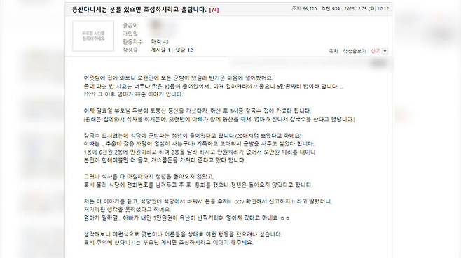 한 온라인 커뮤니티에는 '등산 다니는 분들은 조심하라고 올린다'라는 제목의 글과 함께 군밤 사진 한 장이 올라왔습니다.