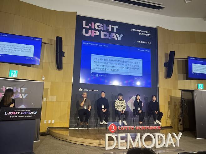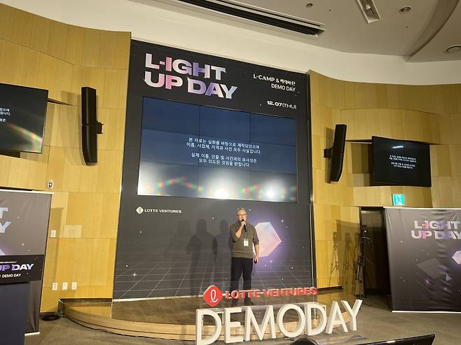 지난 7일 서울 잠실 롯데월드타워에서 열린 롯데벤처스 데모데이 '라이트업 데이(L-ight up DAY)'엔 롯데가 '찜'한 스타트업 15곳이 출격했다. 이날 행사는 엘캠프(L-CAMP) 11기 스타트업 9곳, 엘캠프 부산 5기 스타트업 2곳, 미래식단 3기 스타트업 4곳 등이 참여했다. 31층 SKY컨벤션에서 열린 피칭엔 총 10개 스타트업이 무대에 올랐다.