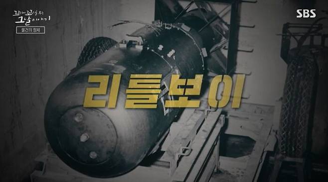 그러던 어느 날, 폴의 비행기에 그 물건이 실렸어. 배송일이 정해진 거야. 이 물건의 길이는 3m로 길쭉해. 무게는 약 4.3톤이나 돼. 배송 예정일은 1945년 8월 6일 오전 8시. 배송지는 일본 히로시마야. 이 물건의 정체, 감이 좀 오지? 그래 맞아. 인류 역사상 최초로 투하된 원자폭탄, '리틀보이'야.