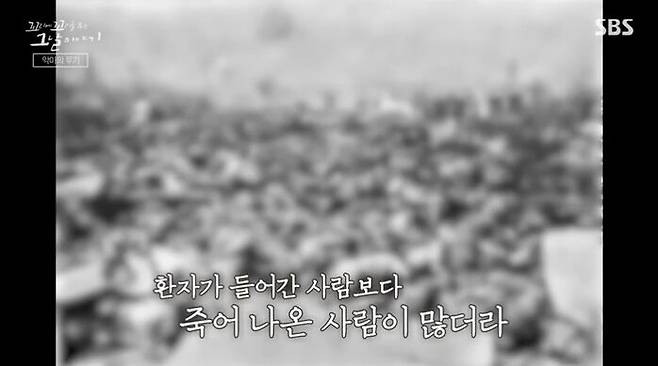 "처음에는 시체를 들것에 들어서 차에 실었는데 다음에는 그냥 끄집어냈어요 그냥. 갈퀴식으로 막 쓰레기 치우듯. 환자가 들어간 사람보다 죽어 나온 사람이 많더라. 그래서 공원이나 학교 운동장 같은 데에 (시체) 처리를 다 못하니까 전부 태워버렸다는 거지."