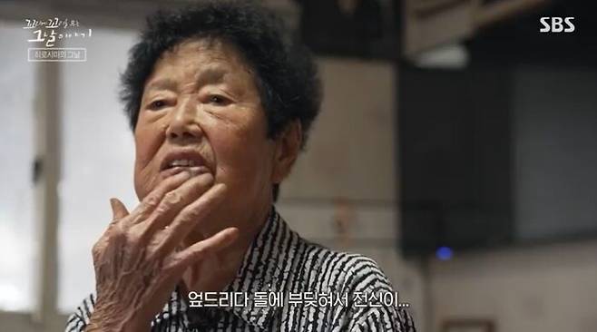 "(원폭이) 떨어질 땐… 팍 엎드렸지. 엎드리다 돌에 부딪혀서 전신이… 피는 나지, 아프지, 나는 어리지, 울면서 집에 왔지."