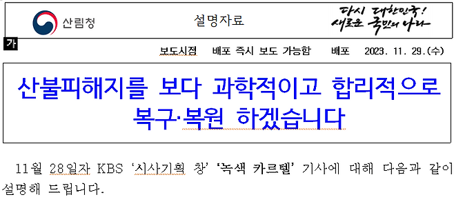 ■ 산림청 "과학적이고 합리적인 산불 복구, 수의계약제도 개선"...구체적인 내용은 빠져있어
