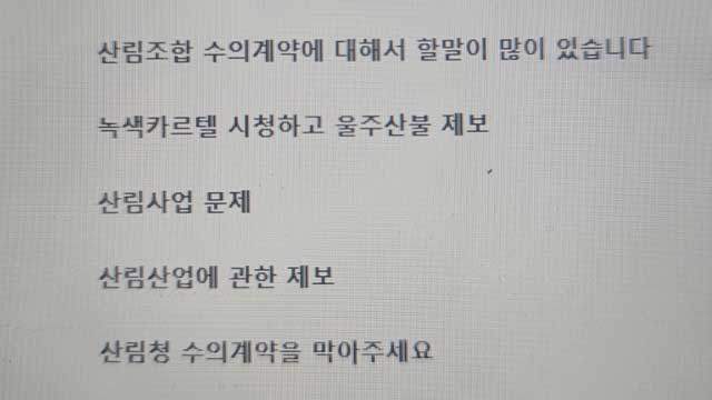 눈에 띄는 댓글도 몇 개 있었습니다. 경험자 아니면 알 수 없는 산림조합과 수의계약 문제에 대해 심도있는 의견을 남겨주신 겁니다. 방송 이후 확실히 느낀 점은 산림사업과 관련해 잘못된 점을 지적하고 울분을 토로한 분들이 많았다는 점입니다.