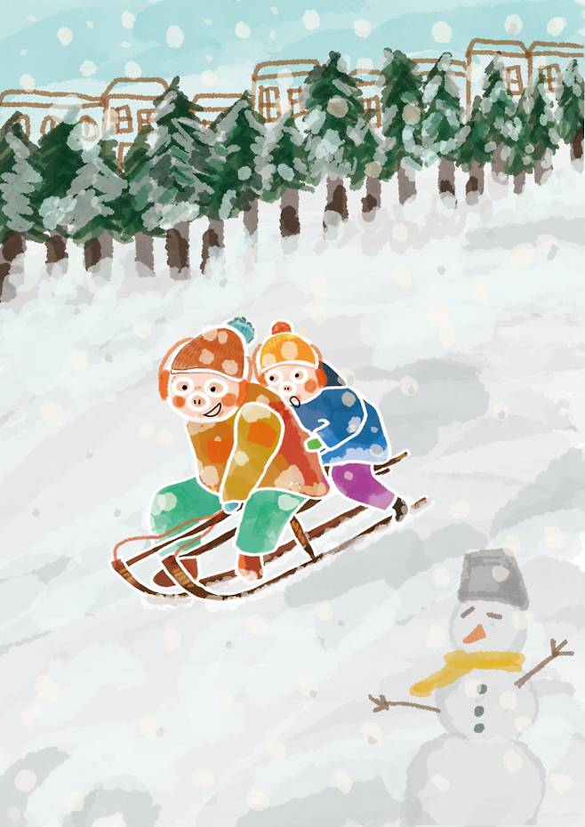 코로나19가 정점으로 치닫던 2020년 겨울, 우리 아이는 두 살이 채 되지 않은 어린아이였다. 걷기는 하지만 썰매를 탈 정도로 성장하진 않은 상황이었는데, 그해 유독 눈이 많이 내렸다. 오랜만에 ‘겨울다운 겨울’을 본 우리는 지인들과 공원으로 향했고 그때 처음 ‘동네 눈썰매장’을 경험했다.