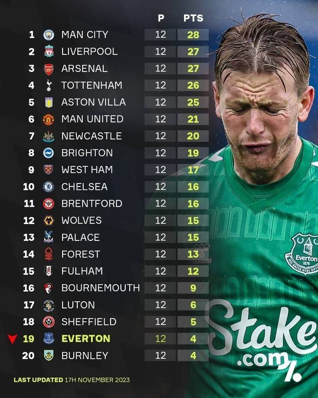 에버턴은 8일(한국시간) 영국 리버풀에 위치한 구디슨 파크에서 열린 뉴캐슬과의 2023-24시즌 프리미어리그(PL) 15라운드에서 3-0 대승을 거뒀다. 이번 승리로 에버턴은 강등권에서 탈출해 17위에 올라섰다.