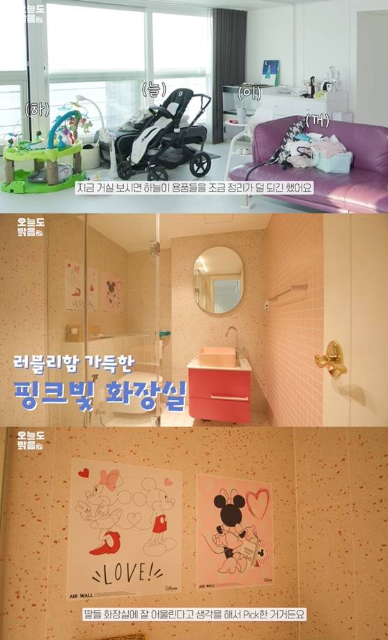 섬세한 인테리어는 화장실에서도 이어졌다. 분홍빛 화장실에 들어선 정맑음은 "세면대 하나하나, 색감이 딸 중심으로 되어있다"고 설명했다.
