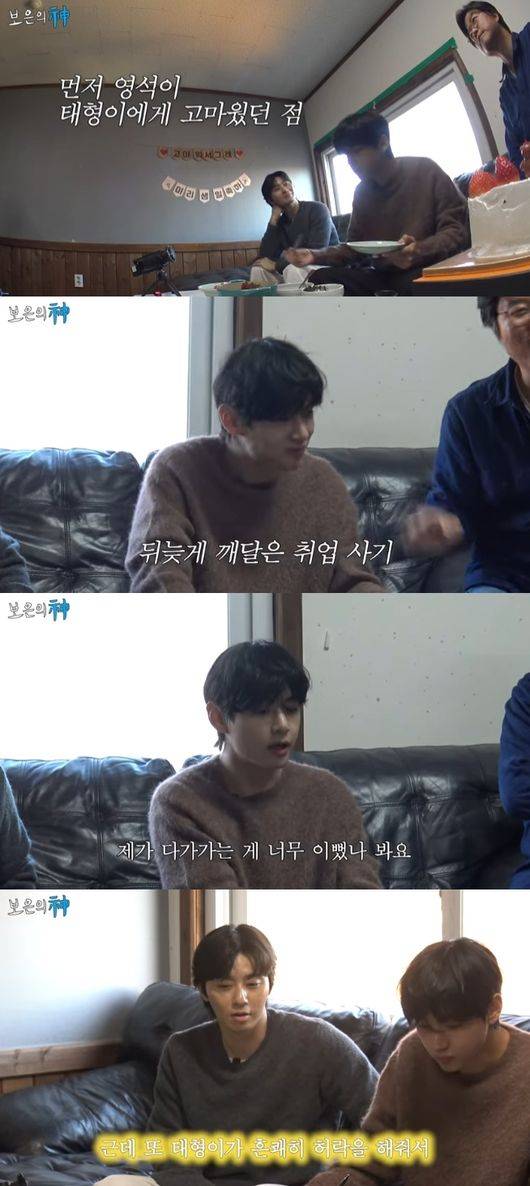 뷔는 "저희 부모님이랑 서준이형 부모님이랑도 친하다. 저희가 소개시켜줬다"며 "저도 고마운점을 할까요? 나는 가기 전에 누가 나 생일케이크 안주나 이생각도 좀 했다"고 기쁨을 전했다. 나영석PD는 "우리도 기분좋다. 아까는 현타 왔지만"이라고 말했고, 박서준은 "아까는 잠깐 미웠다. 그럴수 있잖아? 좋은 사이는 미웠다 좋았다 하면서 더 가까워지는거니까"라고 솔직하게 털어놨다.