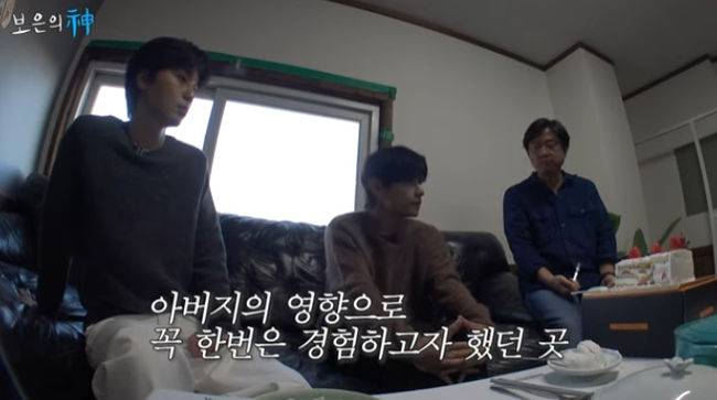 나영석PD는 "긍정적이다 생각하는게. 군대가는게 쉬운일 아니지 않나"라고 신기해 했고, 뷔는 "군대 에피소드를 아빠가 재미나게 풀어주기도 했고. 꼭 한번은 가서 경험해보면 좋겠다고 생각했다"고 말했다.
