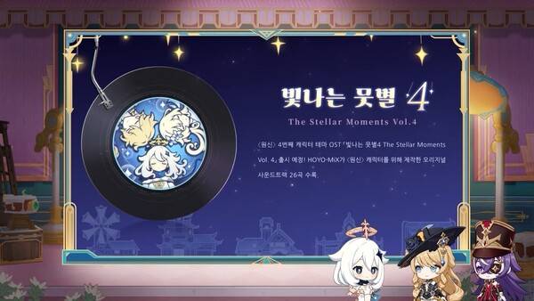 4.3 버전 후반부에는 '빛나는 뭇별 4'가 추가된다. 호요믹스가 원신 캐릭터를 위해 제작한 OST 26곡이 수록되어 있다. 푸리나의 온 세상의 무대 음악도 담겨 있다.