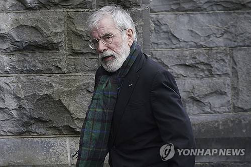 Gerry Adams arrives for the funeral of Shane MacGowan at Saint Mary's of the Rosary Church, Nenagh, Ireland, Friday, Dec. 8, 2023. MacGowan, the singer-songwriter and frontman of The Pogues, best known for their ballad “Fairytale of New York,” died on Thursday, Nov. 30, 2023. He was 65. (Niall Carson/PA via AP) UNITED KINGDOM OUT; NO SALES; NO ARCHIVE; PHOTOGRAPH MAY NOT BE STORED OR USED FOR MORE THAN 14 DAYS AFTER THE DAY OF TRANSMISSION; MANDATORY CREDIT