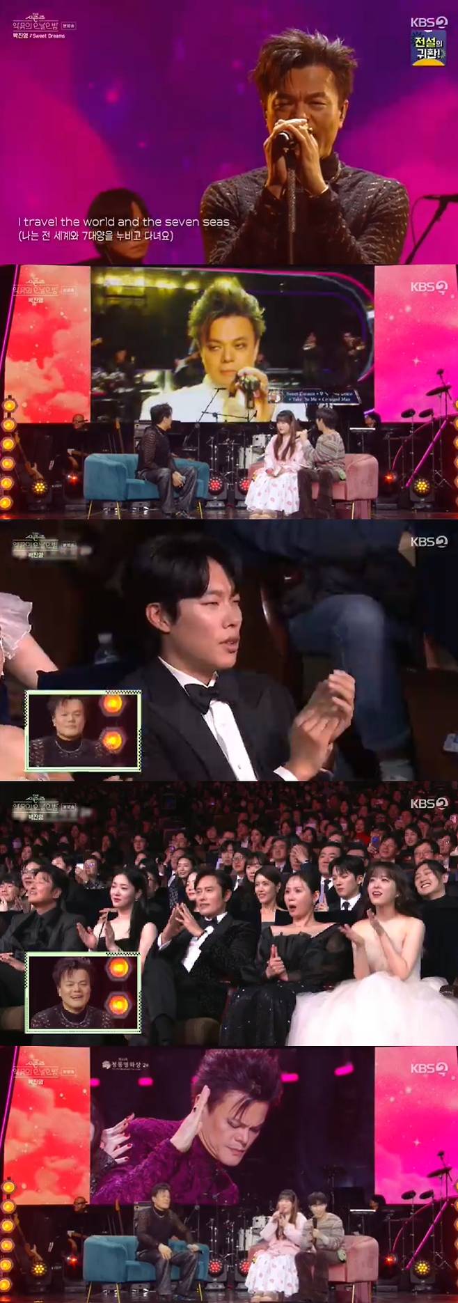 박진영은 등장부터 '청룡영화제' 무대와 똑같은 구성으로 'Sweat Dreams'와 'When we Disco' 등 명곡 메들리를 열창했다.