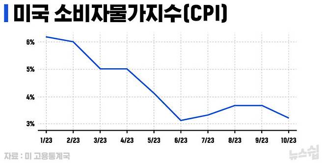 CPI와 PCE 두 가지 지수 모두 하향 추세는 확연하다. 다만 아직 3%대 중반에 머물러 있다. 제롬 파월 연준의장은 연준의 물가안정 목표가 여전히 2%이며, 아직 물가는 그보다 한참 위에 있다는 점을 올 가을 이후로도 여러 차례 말했다.