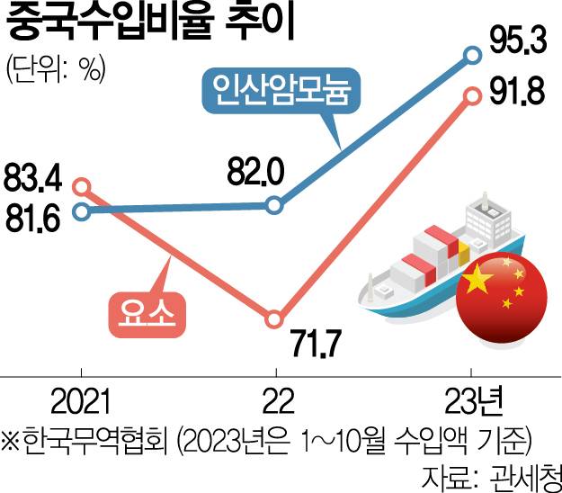 그나마 다행인 부분은 비료용 요소의 중국산 비중이 22% 수준에 그친다는 점입니다. 2021년까지는 중국 수입 의존도가 65%로 높았으나 당시 ‘요소 대란 사태’ 이후로 카타르·사우디 등 중동 국가의 비중을 16%에서 42%로 끌어올리며 중국의 비중을 낮췄습니다. 중국이 요소와 함께 수출을 제한한 인산암모늄은 요소와 달리 국내 생산이 가능합니다. 농협이 운영하는 비료 회사인 남해화학의 한 관계자는 “비료용 요소는 수출선을 카타르·사우디·말레이시아로 다양화했고 인산암모늄은 생산시설을 가진 만큼 비료 공급에 큰 문제가 없을 것”이라고 밝혔습니다.