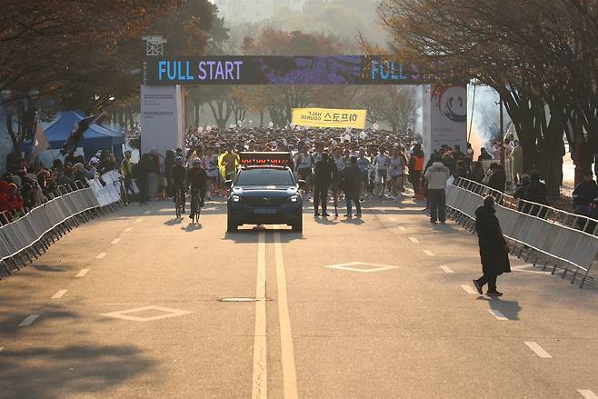 그러나 이른 추위도 출발점으로 운집하는 1만 명의 인파를 막지 못했다. 개중에는 외투를 전부 보관소에 맡기고 민소매에 반바지 차림인 이들도 있었다. 일회용 우의를 가운처럼 두르고 준비 운동으로 몸을 푸는 사람들 사이에서 출발 신호를 기다렸다.
