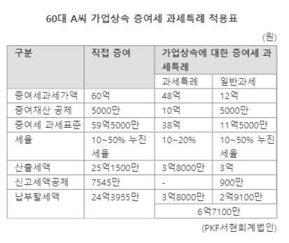 PKF서현회계법인에 따르면 A씨처럼 10년 이상 영위한 가업을 승계하는 경우 일정 요건을 충족하면 ‘가업승계에 따른 증여세 과세특례’를 누릴 수 있다. 이땐 직접증여 세율(10~50%)보다 더 유리한 세율(10~20%)을 적용받아 증여세 부담을 덜 수 있다.