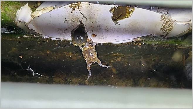 #2. 지난 4월 말, 충북 단양군 어상천면 어곡천은 하천공사가 한창이었다. 2020년 수해 당시 하천이 범람한 어곡천 폭을 넓히는 재해복구 공사로 2021년 6월부터 올 상반기까지 진행됐다. 어곡천 10㎞ 구간 중 공사구간인 심곡리 3.86㎞는 ‘묵납자루’ 집단 서식지이다. 멸종위기 야생생물 2급인 묵납자루는 몸길이 5~7㎝ 크기로 4~5월에 산란하고 남한강 등 물이 완만하게 흐르는 곳에 산다. 지느러미와 몸통이 짙은 검은색을 띠는 게 특징이다. 최근 개체 수가 급격히 줄어들어 멸종위기 2급으로 지정·관리하고 있다. 가득했던 수변식물은 공사로 모두 뽑혔고 하천 둑은 콘크리트로 덮였다. 묵납자루는 더 이상 이곳에 서식하지 않는다.