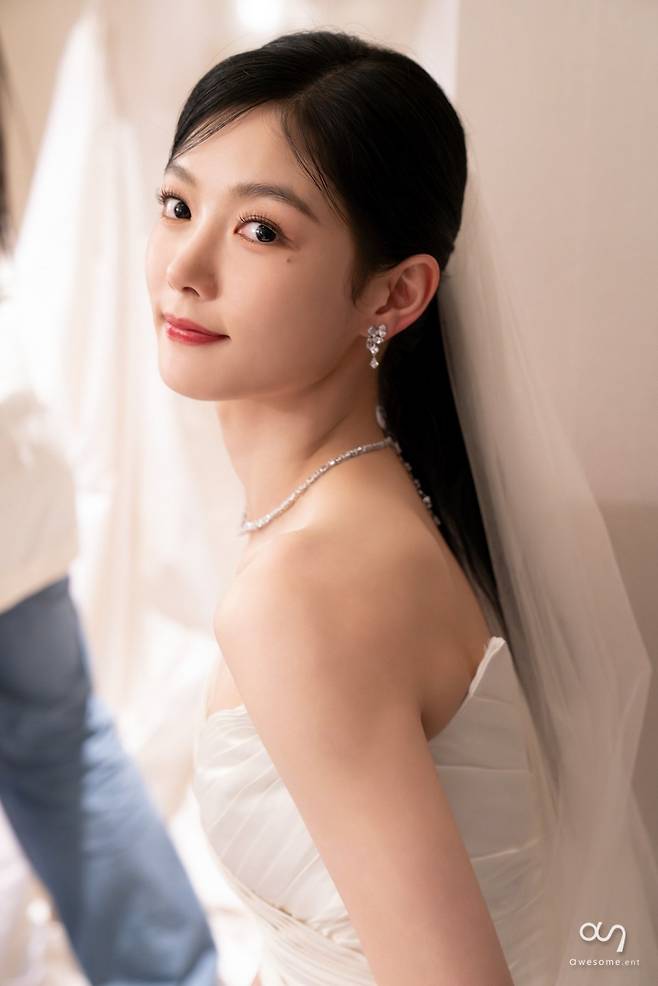 특히 공개된 사진 속 김유정은 어깨선을 드러낸 오프숄더 드레스와 깔끔한 포니테일, 포인트를 주는 액세서리까지 군더더기 없이 소화해 내며 세련되면서도 성숙한 매력을 뽐냈다. 또렷한 이목구비를 더욱 강조하는 메이크업과 순백의 웨딩드레스가 완벽한 조화를 이루며 화보를 방불케 하고, 상큼한 미소가 더해져 마치 림 같은 비주얼을 선보여 눈길을 끌었다.
