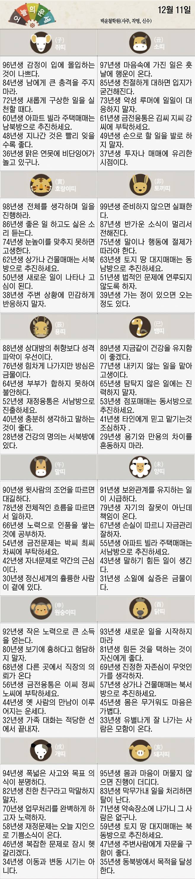 [재미로 보는 오늘의 운세] 12월 11일 (월요일)