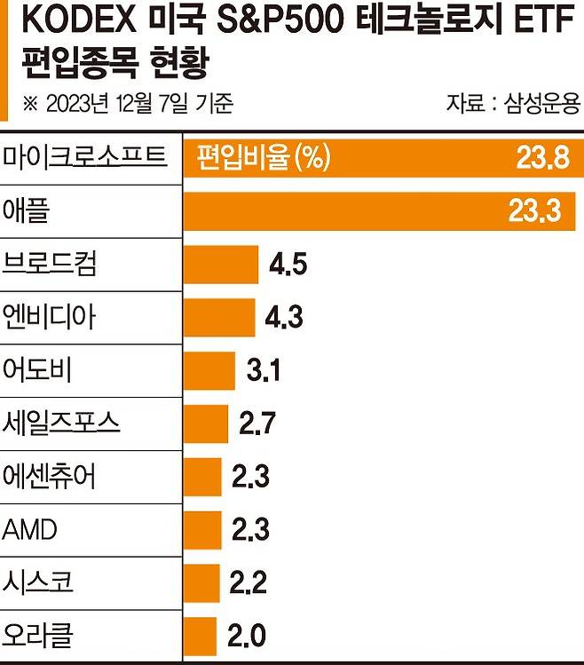 삼성자산운용의 'KODEX 미국 스탠더드앤드푸어스(S&P)500 테크놀로지 상장지수펀드(ETF)'는 유망한 미국 테크주에 안정적으로 투자하고 싶은 투자자들이라면 눈여겨볼 만하다.