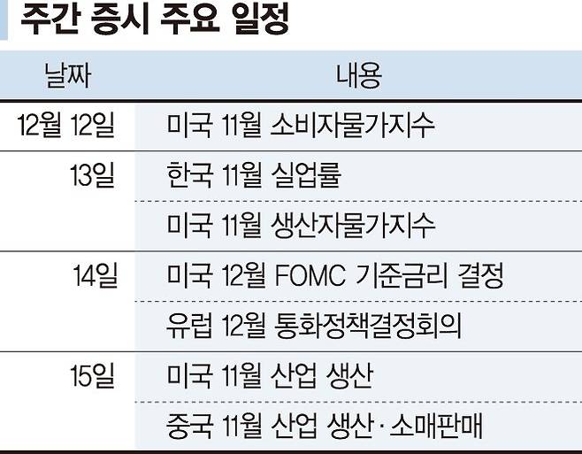 미국 연방준비제도의 12월 연방공개시장위원회(FOMC) 회의가 있지만 관망심리가 강화될 것이라는 게 증권가의 예상이다.